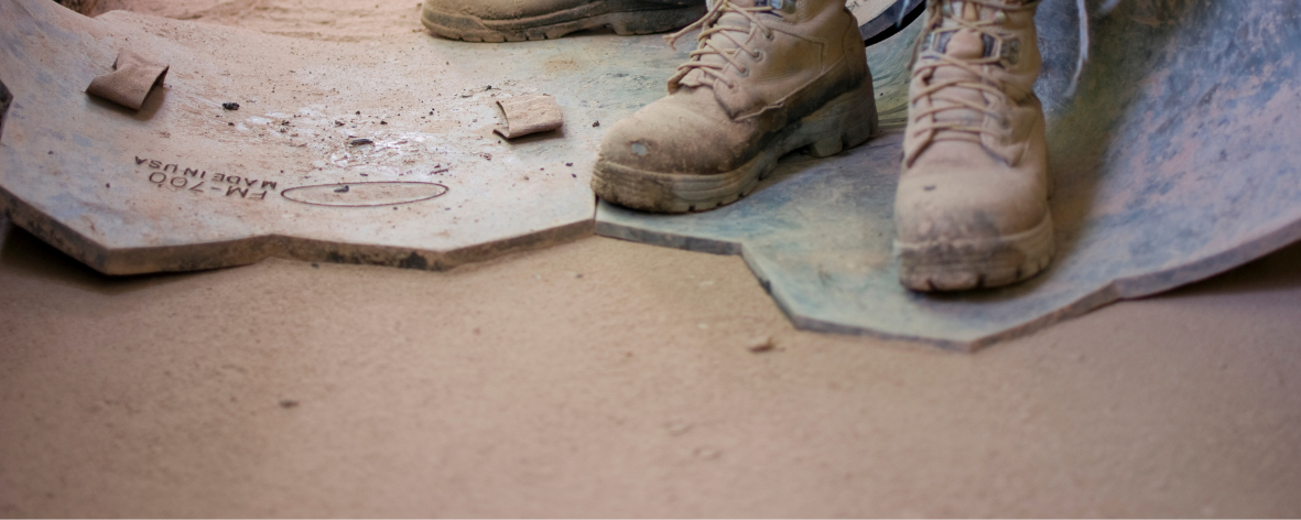 Using a reference line, begin by placing the first mats using this line and move across the slab. When stamping, the mats should be tamped using a special pounder without delay