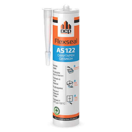 Flexseal AS122 е еднокомпонентен, ацетатно втвърдяващ силиконов уплътнител. Втвърдява бързо при излагане на влажен въздух и образува еластично, издържливо уплътнение. Flexseal AS122 съдържа фунгицид, който възпрепятства растежа на плесени върху уплътнението.