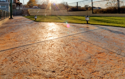 Stamped concrete is concrete that is patterned and/or textured or embossed to resemble brick, slate, flagstone, stone, tile, wood, and various other patterns and textures.