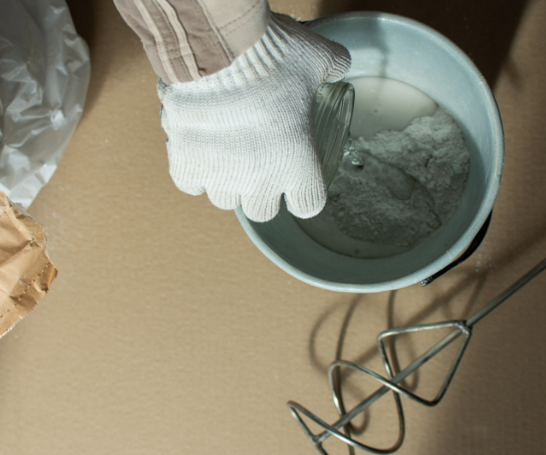 - Pour the liquid polymer in suitable clean bucket and start adding the powder to the polymer or water for single component products gradually while continuous mixing is maintained using mixer.