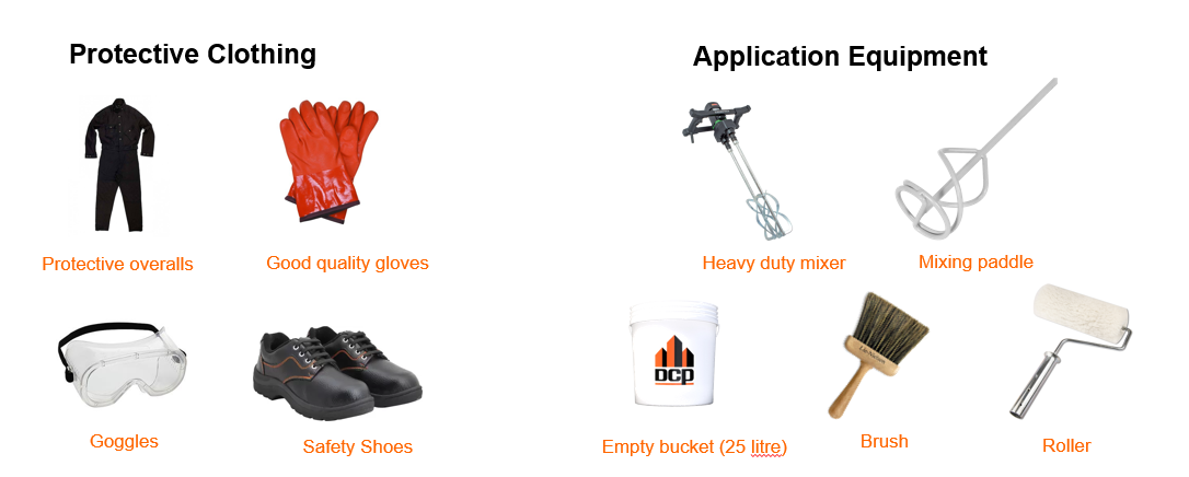 - Apply the mixed material using a brush, roll, trowel, or spray machines. The mixed material should be brushed/rolled well into the substrate in one direction.