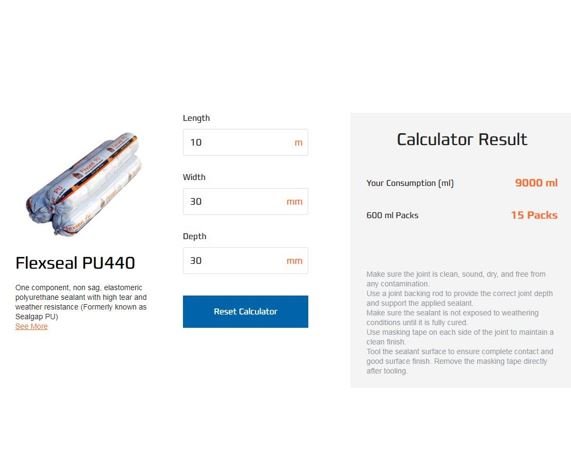 - Calculate the needed quantity using DCP Joint Sealants Calculator