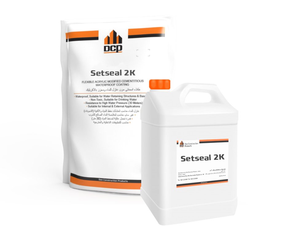 Setseal 2K is available in 20 kg packs (5 kg polymer & 15 kg powder), supplied either as separate components or as a bucket containing both components for ease of mixing (Setseal 2K Bucket).