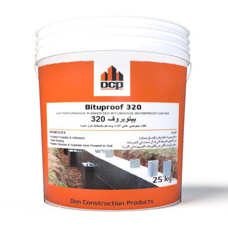 Bituproof 320 is a dark brown emulsified bitumen liquid reinforced with latex rubber, formulated from selected raw materials to form a high build elastomeric waterproof and protective coating for concrete and masonry.