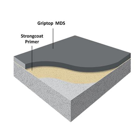 Griptop MDS is applied by trowel to horizontal surfaces and has very good durability towards pedestrian and vehicular traffic. It also has very good resistance to many of the chemicals commonly found in an industrial environment (consult our Technical Department for further details). It can be supplied in a variety of colours (consult our Sales Department for details).