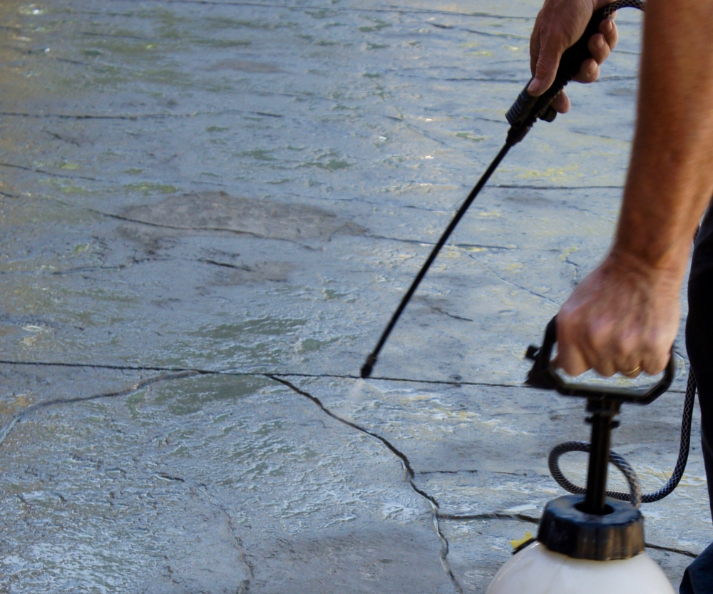 After stamping is complete, and the stamps are removed, excess Monorelease should be brushed off and then cleaned using pressurized water