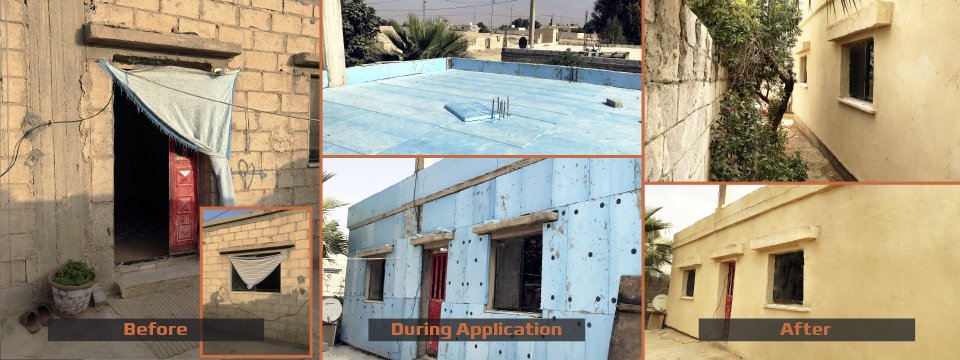 For the last a few weeks, DCP Jordan donated several of our high quality products to renovate and upgrade the existing conditions of one house at Dulail town in order to create a healthier environmental quality for the occupants and provide a pleasant attractive exterior finishing for the house. This was done by providing DCP’s External Thermal Insulation Composite System (ETICS) to maintain a thermally insulated building envelope as well as attractive external finishing for the facades. In addition, DCP Jordan provided Setseal B for roof waterproofing, Cemcoat Putty to treat interior walls and partitions as well as Proplast RC50 and Proplast CM15 to treat external walls and fences.
