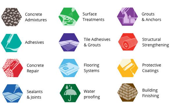 The focus of our full product range below caters to our 4 core business units: Concrete & Cement Technology, Underground Construction Technology, Construction Projects Materials Technology and Building Finishing Products.